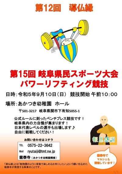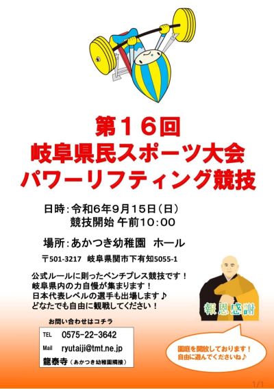 【9月あかつきパーク併催「岐阜県民スポーツ大会パワーリフティング競技」ご案内】