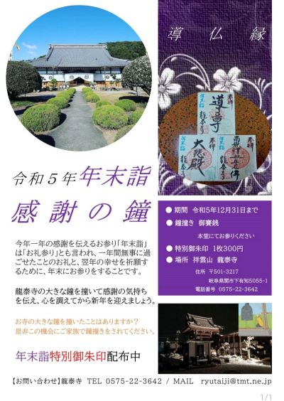 | 曹洞宗 祥雲山 龍泰寺 年間行事 | ||
