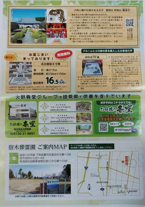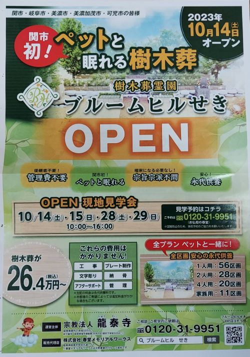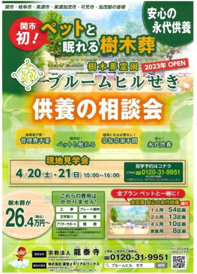 【龍泰寺樹木葬霊園ブルームヒルせき オープン・現地見学会のご案内】