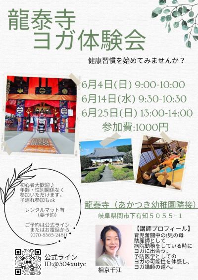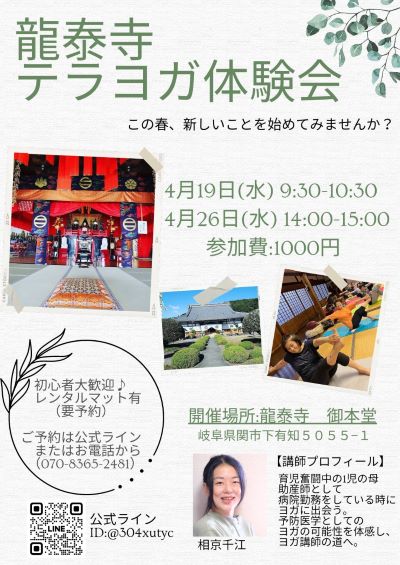 【龍泰寺テラヨガ体験会のご案内】