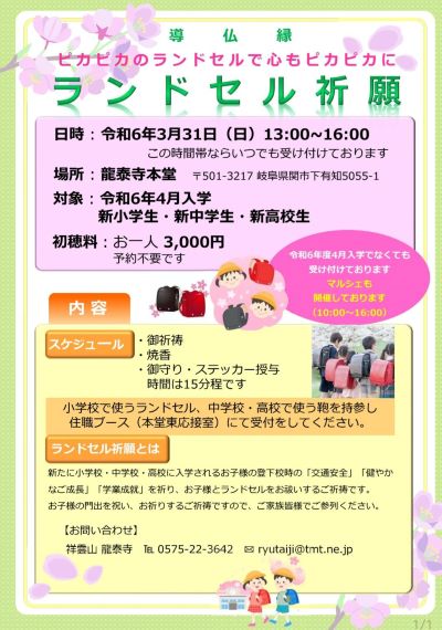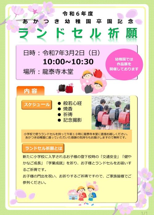 【令和6年「ランドセル祈願」】