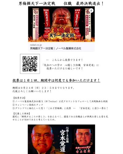 【男梅顔天下一決定戦 住職 最終決戦進出】