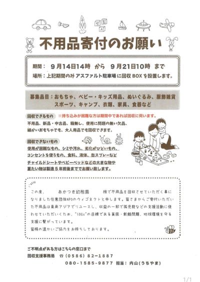 【不用品寄付のお願い】